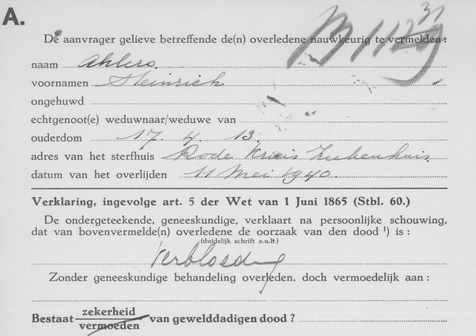 Heinrich Ahlert raakte op vrijdag 10 mei 1940 zwaargewond tijdens de gevechten op of rond het hulpvliegveld Ockenburg. Hij overleed nog dezelfde dag aan een verbloeding van een schotwond in het Rode Kruis Ziekenhuis in Den Haag. Heinrich Ahlert werd op woensdag 15 mei 1940 op het Ehrenfriedhof begraven.