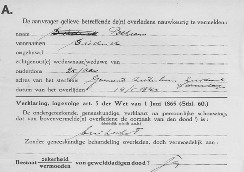 Raakte tijdens de gevechten op of rond het vliegveld Ypenburg zwaargewond en werd daarna naar het Gemeenteziekenhuis Zuidwal in Den Haag vervoerd. Volgens het operatieboek had hij een schot door de bekken, mesosigmoid en mesocolon en werd een perforerende opening gehecht. Ook was er een retroperitoneaal hematoom en rechterpolswondexicisie van het linkerbeen en de rechterdij. Ook werd er een cellonaspalk aangebracht. Op maandag 13 mei 1940 werd hij weer geopereerd, waarbij de arts een aantal hechtingen uit zijn wond haalde en 2 gummidrains intra-abdominaal ingebracht werden. Een dag later overleed hij alsnog aan zijn verwondingen. Diedrich Behrens werd op zaterdag 18 mei 1940 op het Ehrenfriedhof