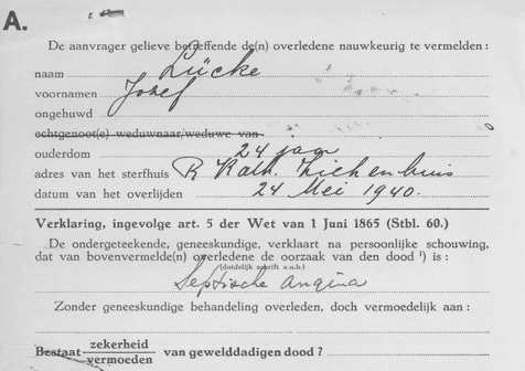 De eenheid waar Josef Lücke toe behoorde had op hulpvliegveld Ockenburg, maar moest vanwege het versperde hulpvliegveld uitwijken, waarna vele Duitse vliegtuigen bij het Staelduinse Bos nabij Hoek van Holland landden. Hij raakte tijdens de gevechten met Nederlandse militairen zwaargewond en werd opgenomen in het Johannes de Deo Ziekenhuis in Den Haag. Op zaterdag 25 mei 1940 overleed hij aan zijn bij de gevechten nabij Hoek van Holland opgelopen verwondingen. Josef Lücke werd dezelfde dag op het Ehrenfriedhof begraven.